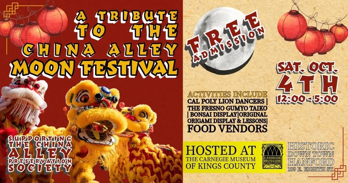 The Carnegie Museum of Kings County, in partnership with the China Alley Preservation Society, will be presenting a tribute to the Moon Festival on Saturday, Sept. 28, at the Carnegie Museum. The event is being held in conjunction with the museum's current exhibition celebrating local Asian history and culture. It starts and noon and will run until 5 p.m.
