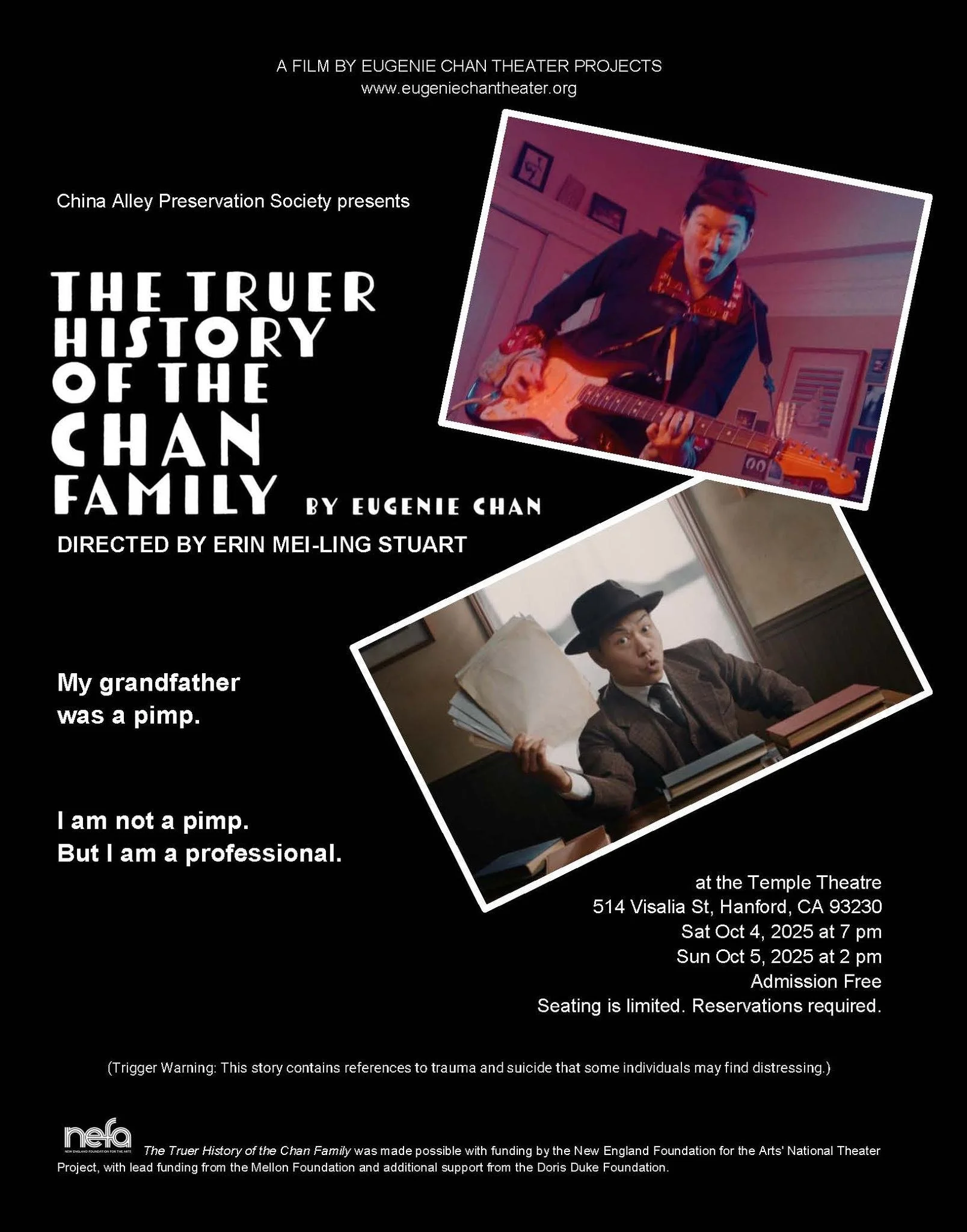 At 7pm, there is a screening of Eugenie Chan’s film, The Truer History of the Chan Family at the Temple Theater. The film will also be shown on Sunday, October 5 at 2pm.